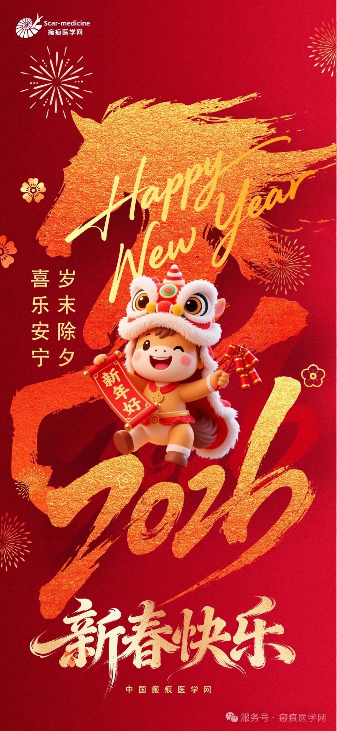 马年象征奋进与坚韧,恰如我们的事业:瘢痕修复非一蹴而就,而是与时间并肩的长久坚守。愿各位同仁怀揣龙马精神,在临床与创新中策马扬鞭、再攀高峰;愿每一位疤友在新的一年焕然新生,让肌肤印记不再成为人生羁绊,自信从容,奔赴美好。